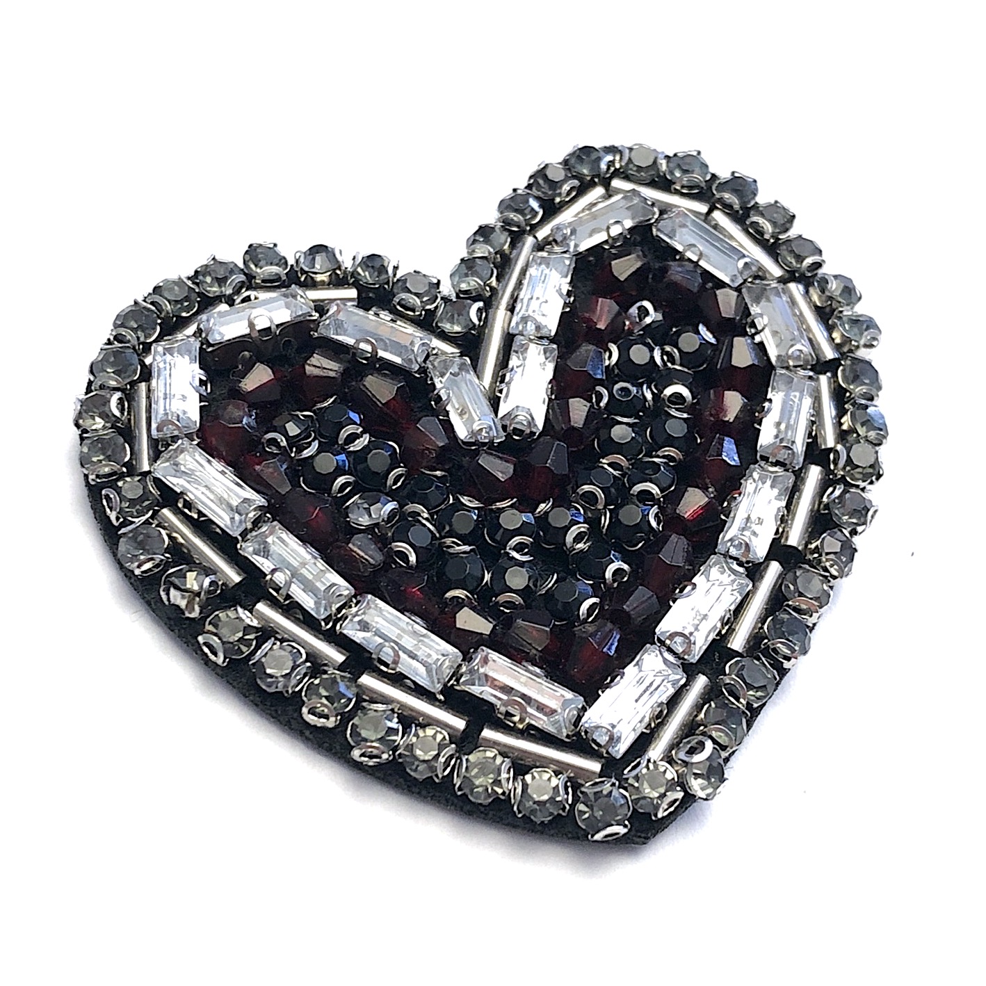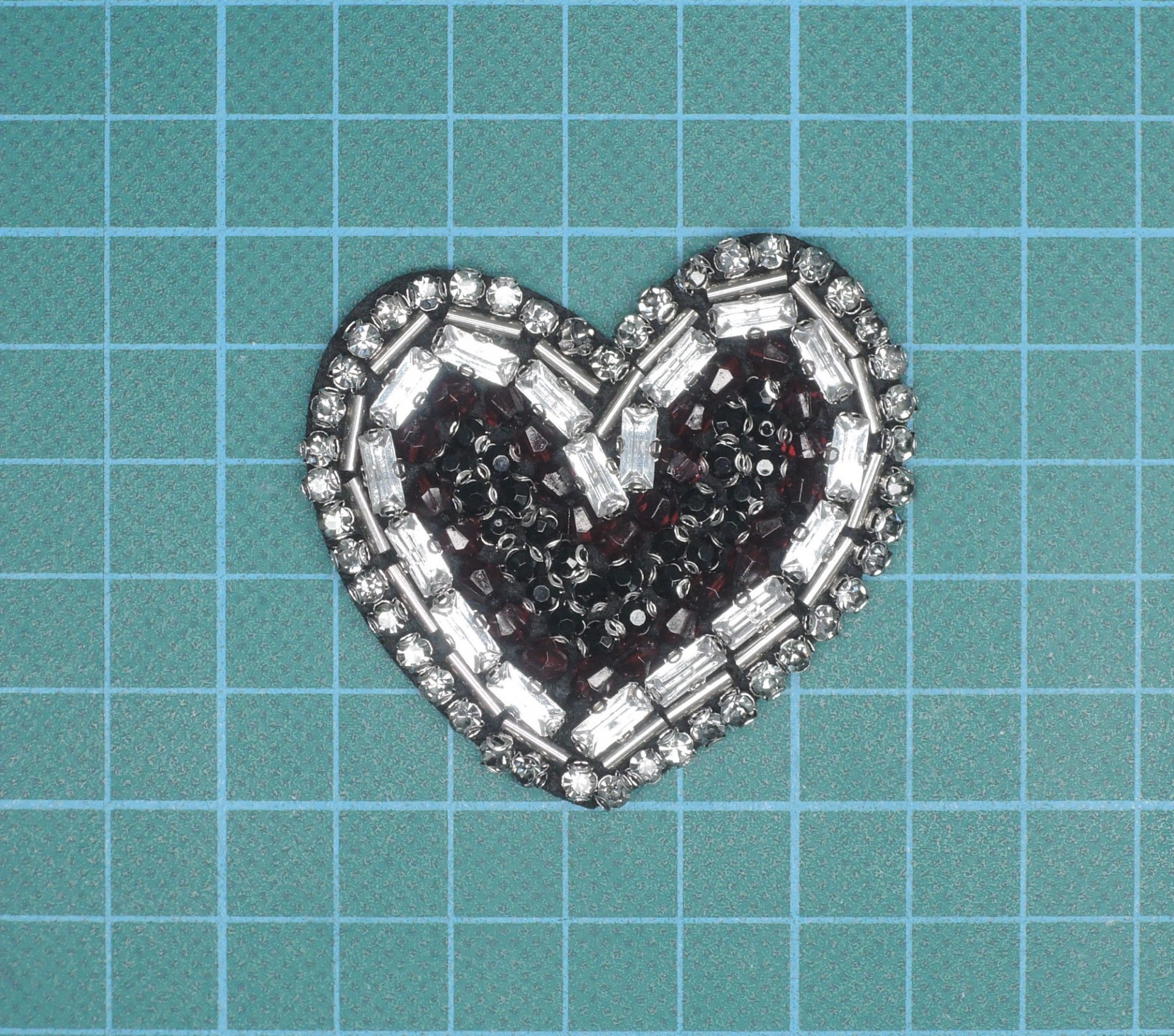 Aplicação Coração 5cm Base Feltro com Cola Pedras e Vidrilhos Cosidos