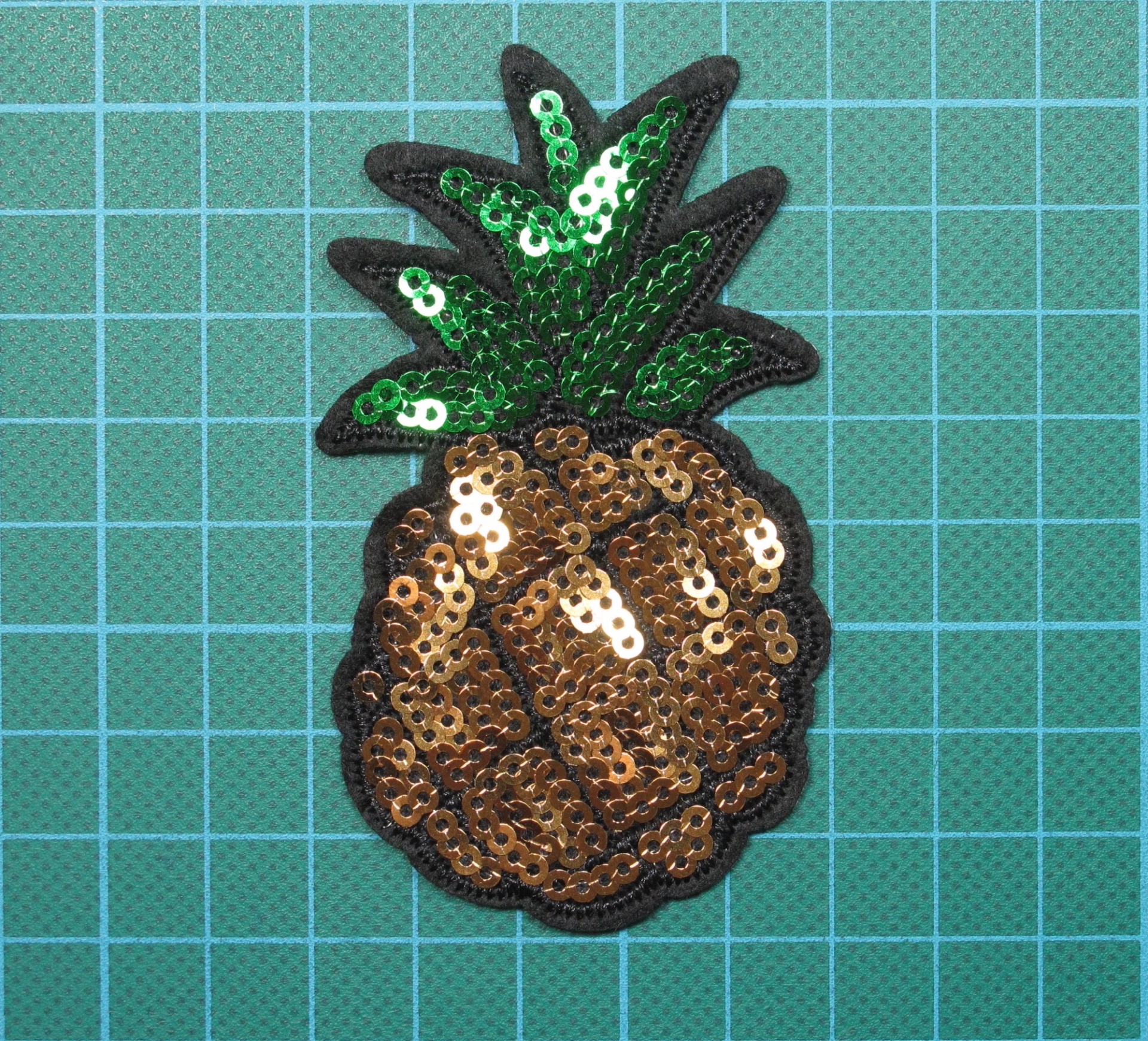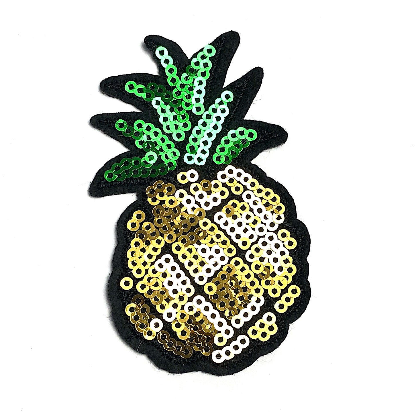 Emblema Ananas 8cm x 5cm com Bordado e Lantejoulas sobre Feltro com Cola
