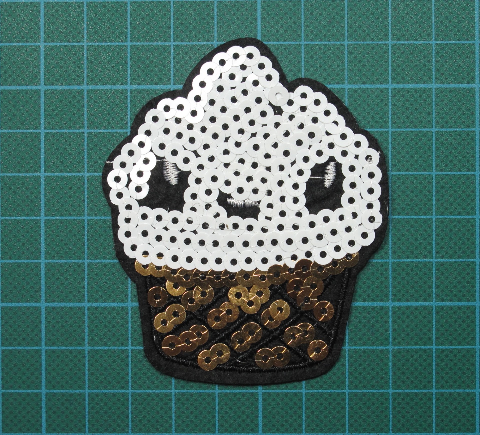 Emblema Copo de Gelado 8cm x 6,5cm com Bordado e Lantejoulas sobre Feltro com Cola