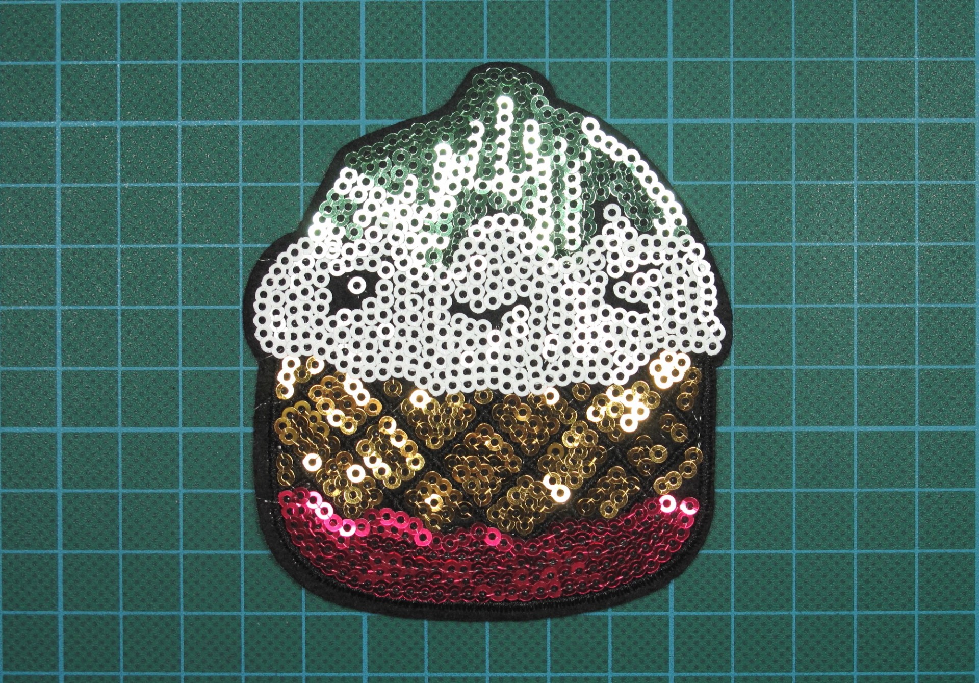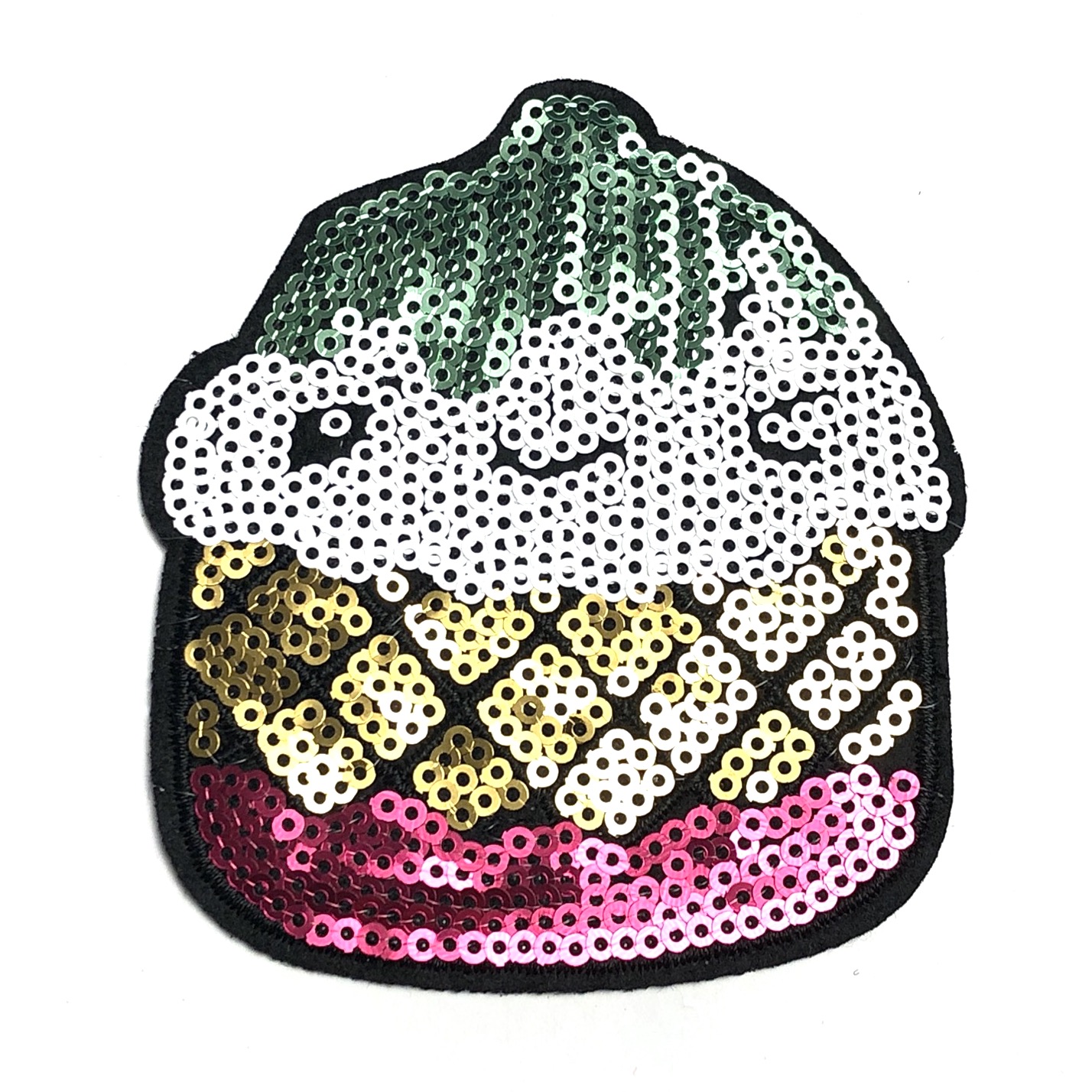 Emblema Copo de Gelado 9cm x 8cm com Bordado e Lantejoulas sobre Feltro com Cola