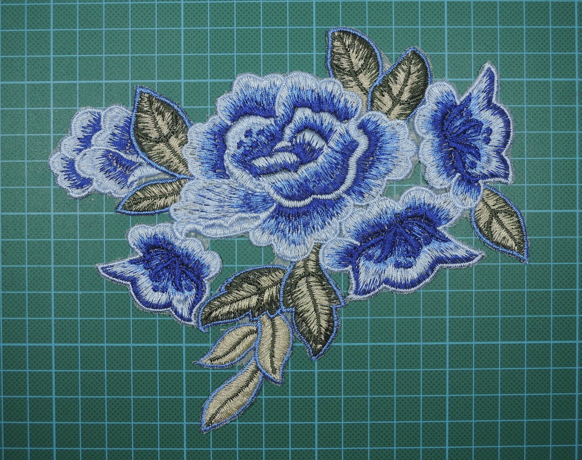 Flores Bordadas sobre Organza 13,5cm x 18cm com Base de Cola