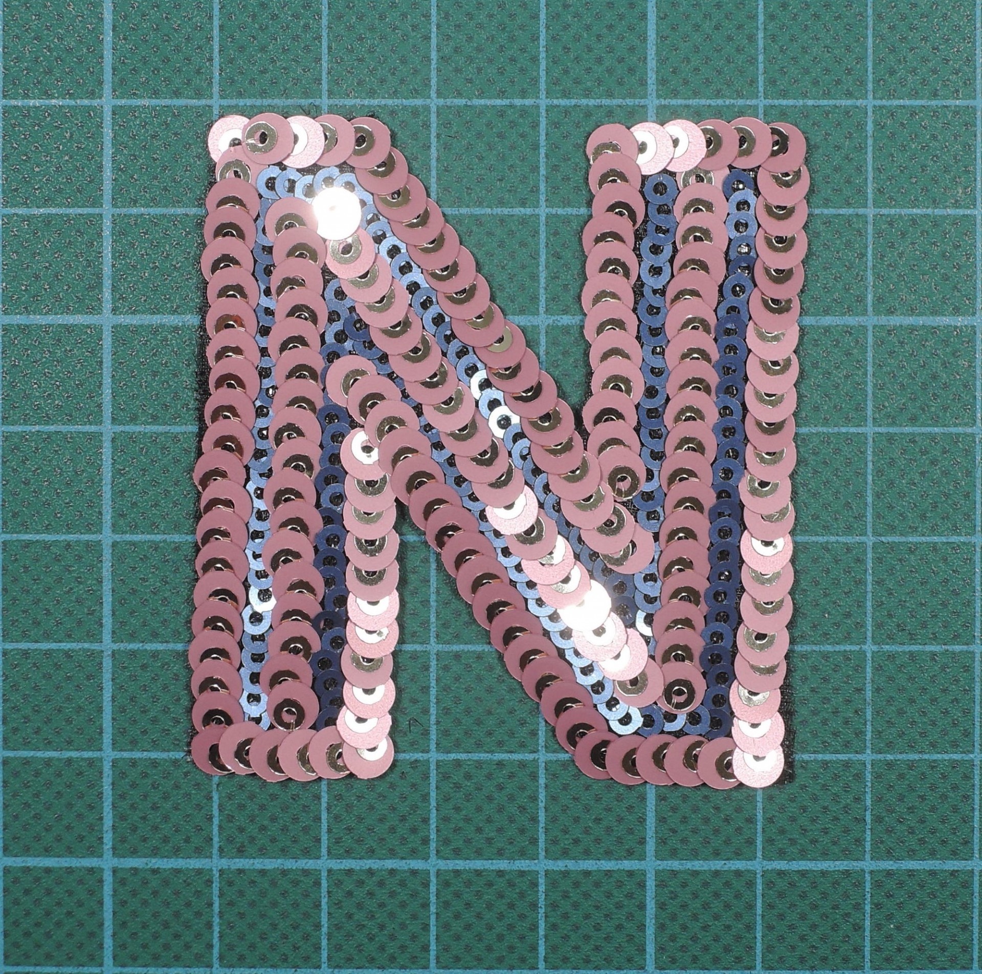 Letra N 6cm x 4,5cm com Lantejoulas sobre base de tule com Cola
