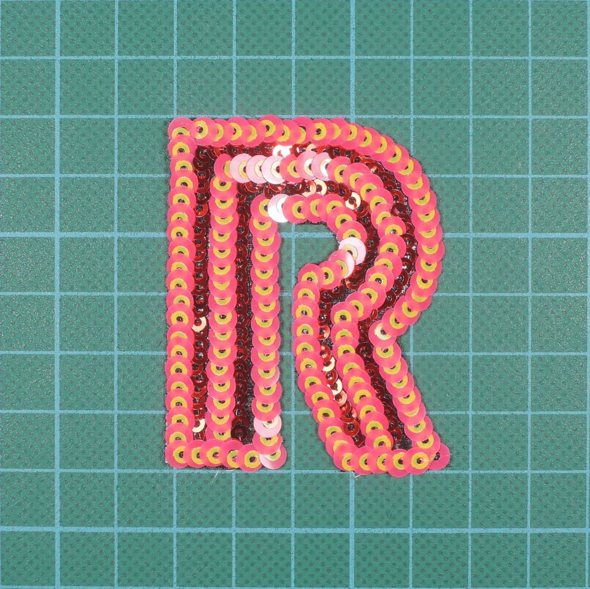 Letra R 6cm x 4,5cm Bordada com Lantejoulas sobre base de tule com Cola