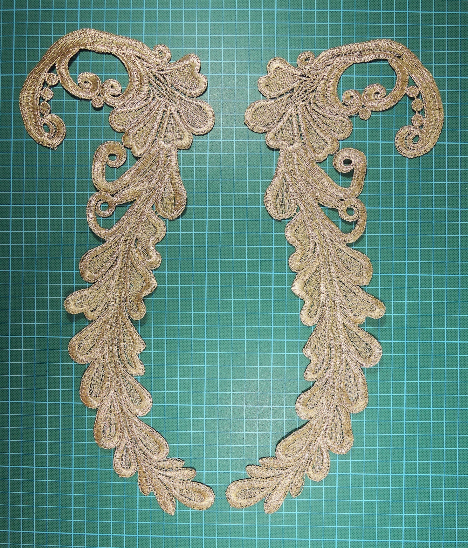 Home Rendadas Par de Aplicações Bordadas com Lurex 34,3cm x 22cm Par de Aplicações Bordadas com Lurex 34,3cm x 22cm SKU: 14700421 2,25 € Desconto de %. IVA incluído. Comprar Contactar Adicionar à wishlist Descrição: Aplicações com desenho em espelho, podem ser aplicadas uma de cada lado de qualquer peça de vestuário Cor: Dourado Composição: Poliester, Fio Metalizado Modo de Uso: De coser à máquina ou manualmente. Tags AplicaçãoRendadaRendaParesVestidoCerimoniaFestagalaVintageCamisolaLingeriePatchPeitilhoRemendoBordadoMedievalRenascimentoLuxoEncaixe Características Partilhar